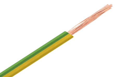 Cable de alimentación y control LAPP H07V-K, configuración 1×1.5mm2 (1x16AWG) color Verde-Amarillo, aislamiento de PVC, no propagante a la llama, clase 5/hilos finos, para aplicaciones dentro de gabinetes, condulet, o sistemas cerrados similares, aislamiento eléctrico 750V, con test de voltaje de 2500VAC, rango de temperatura hasta 70º C en instalaciones fijas.